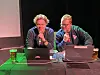 LOSERE: EvenExtra og Sander Kurseth fra Student TV loset publikummet gjennom en herlig quiz. Såklart iført sine nye Student TV gensere.