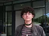 Rundturen på campus begynner i øst. Utenfor Sivert Aarflot-bygget tar Kyle Clarkson en pause fra animasjonstimen og trekker sine doser med frisk luft.